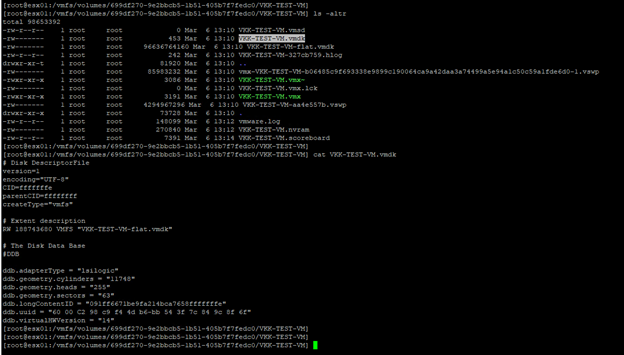 Yani .vmdk dosyası sanal diskin nasıl organize edildiğini anlatan bir rehber görevi görür. Kendi başına büyük veri içermez daha çok esas veriyi tutan disk dosyasına işaret eder.