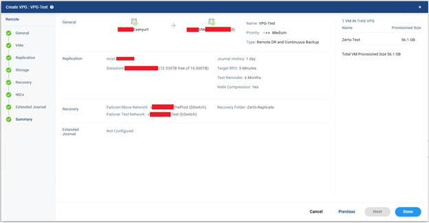 Bu son kontrol ileride oluşabilecek birçok sorunu daha VPG oluşmadan engeller. Her şey doğruysa “Done” butonuyla işlem tamamlanır.
