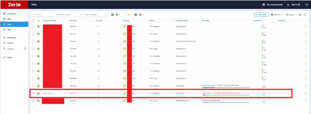 VPG oluşturulduktan sonra iş bitmiş sayılmaz. Asıl süreç bundan sonra başlar. Çünkü Zerto seçilen VM’lerin ilk kopyasını hedef tarafa göndermeye başlar. Bu aşama “initial sync” olarak adlandırılır.