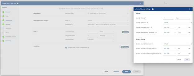 Bu aşamada Zerto’nun koruma mantığını belirleyen temel replikasyon ayarları yapılır. Buradaki en dikkat çekici alanlardan biri journal history’dir.