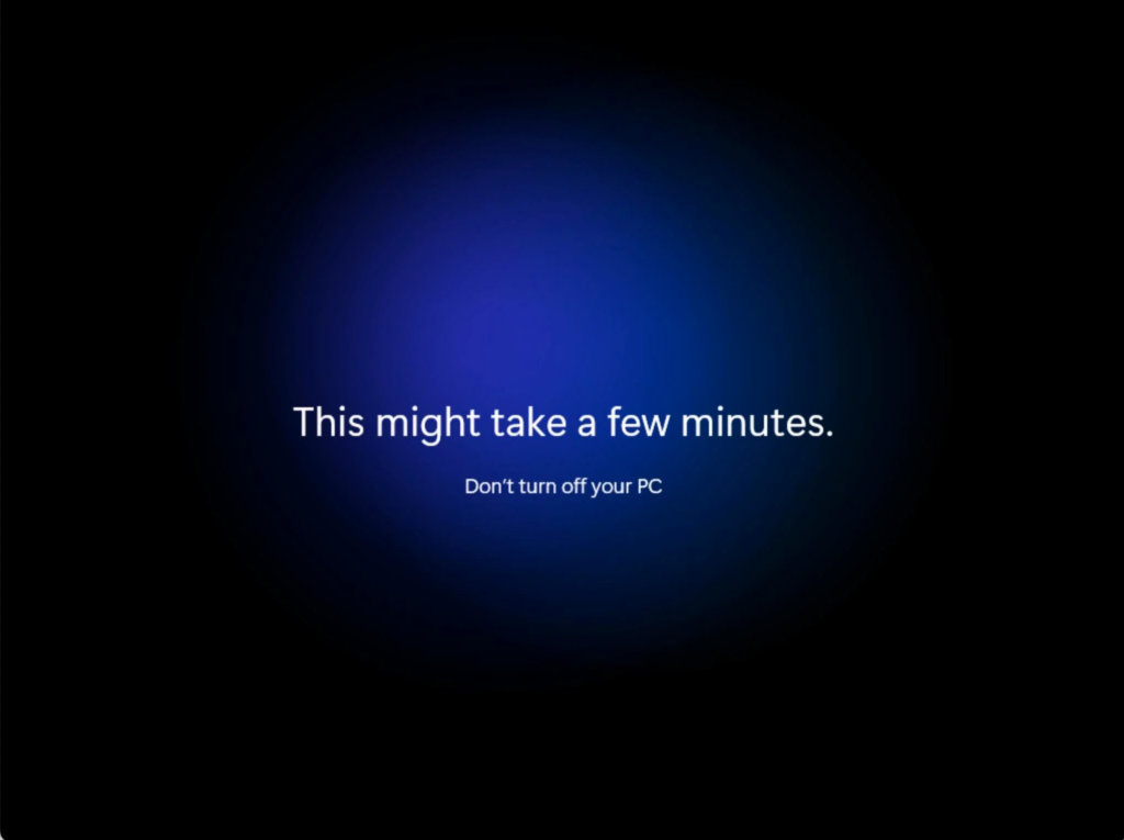 “This might take several minutes. Don’t turn off your PC.”
